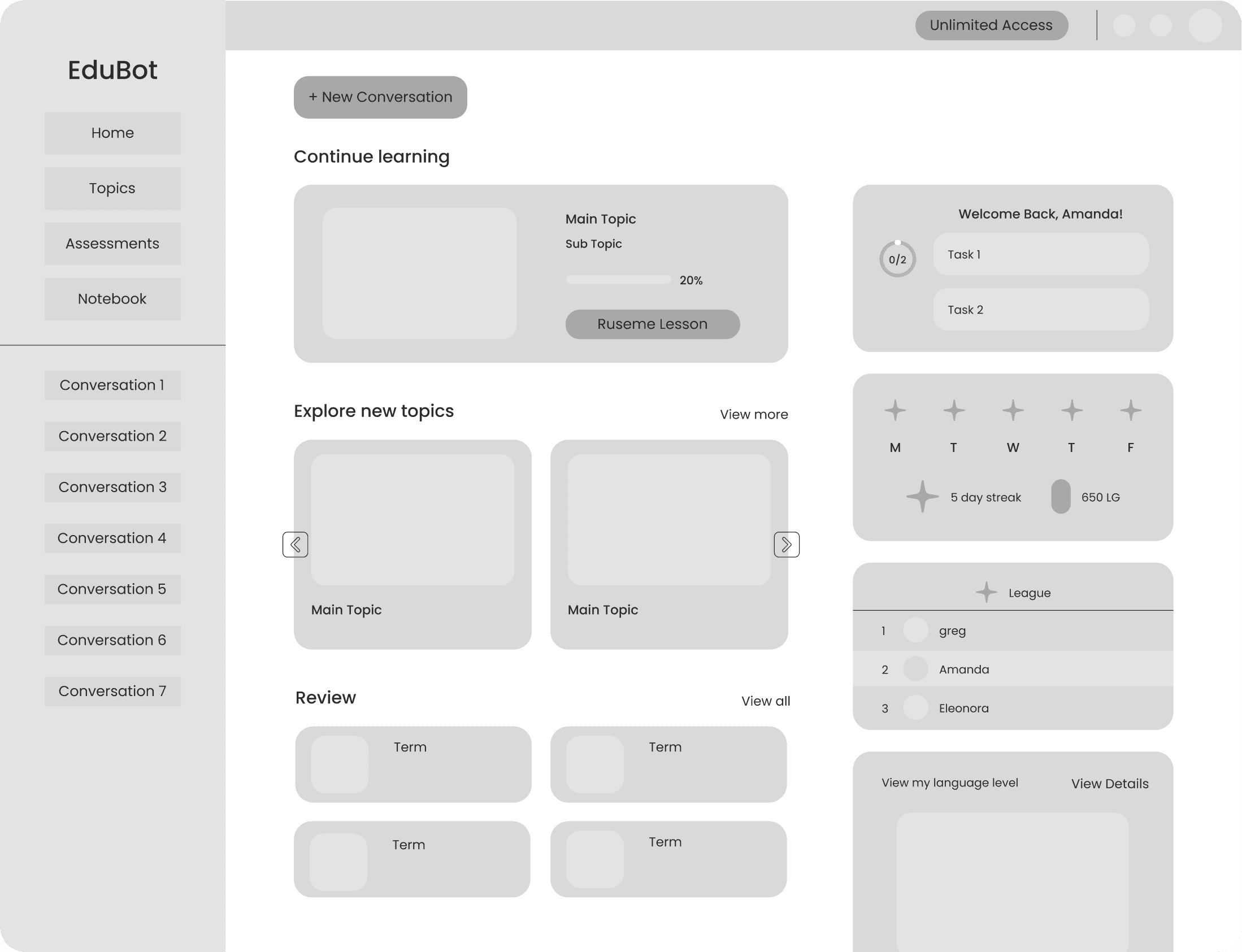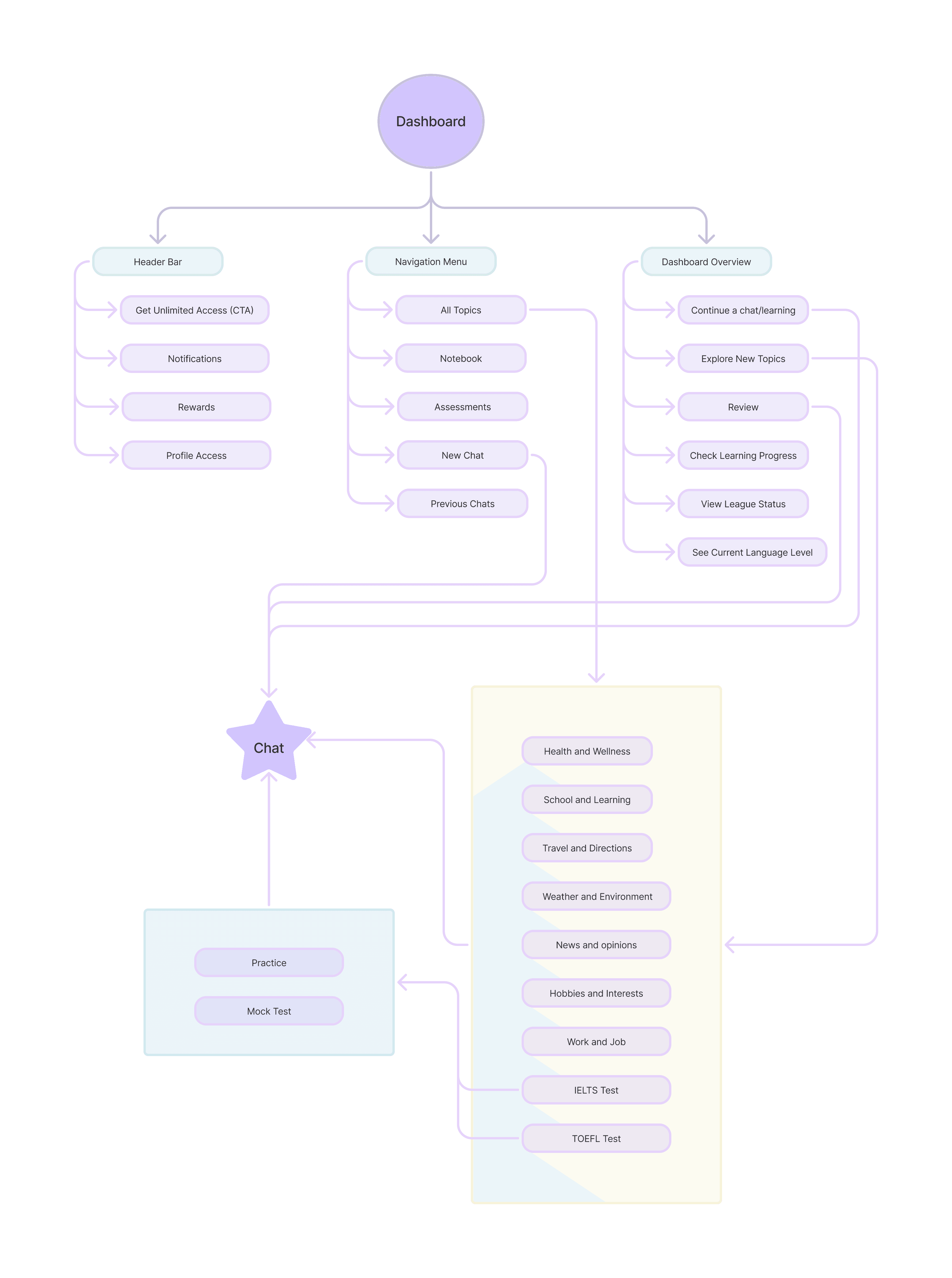 How might we design a flexible, chat centered learning platform that supports both real life English and academic test prep, while making the experience feel conversational, motivating, and personalized?