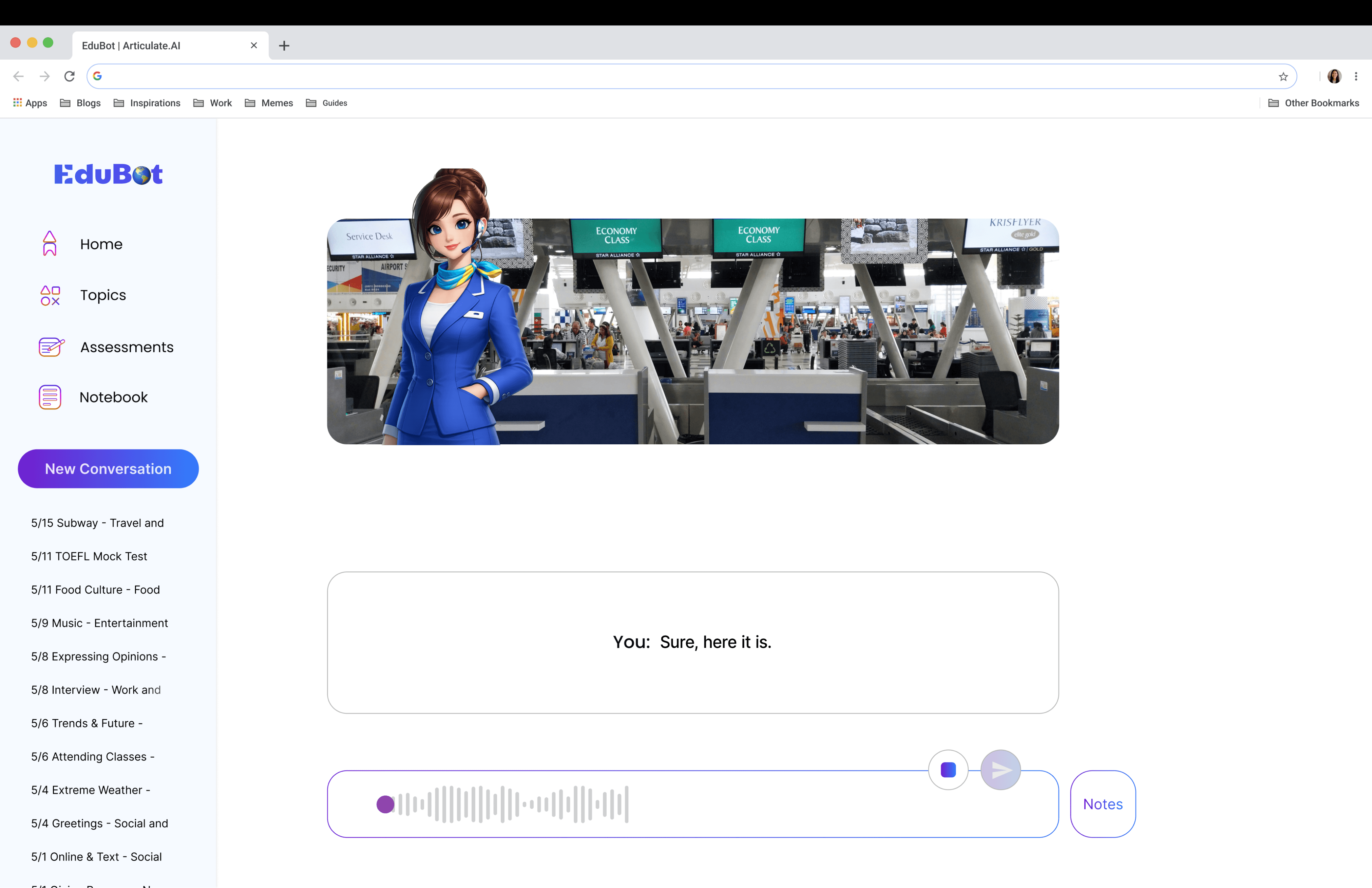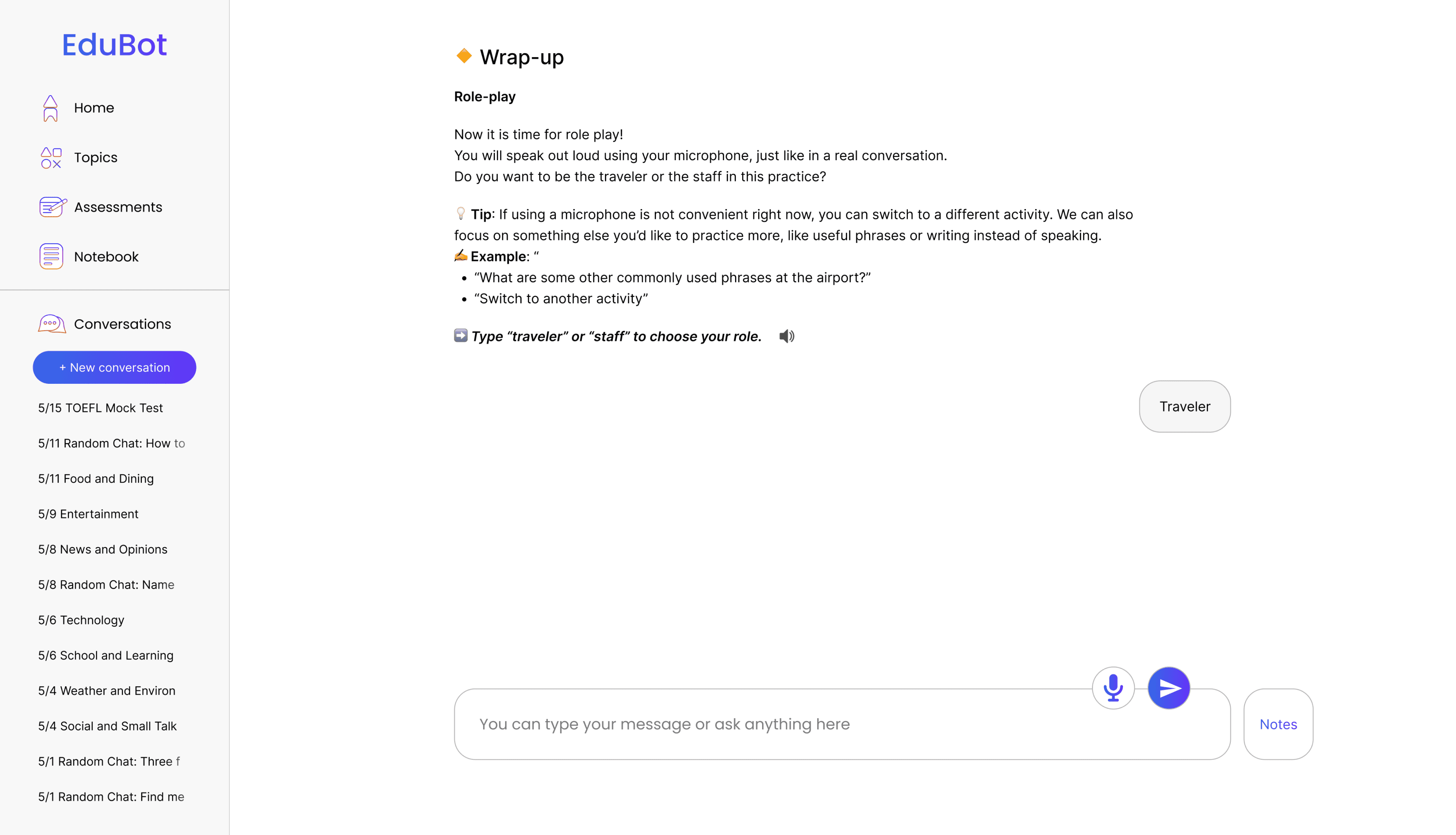 EduBot enabled learners worldwide to build confidence in real-life English conversations through adaptive, personalized practice.