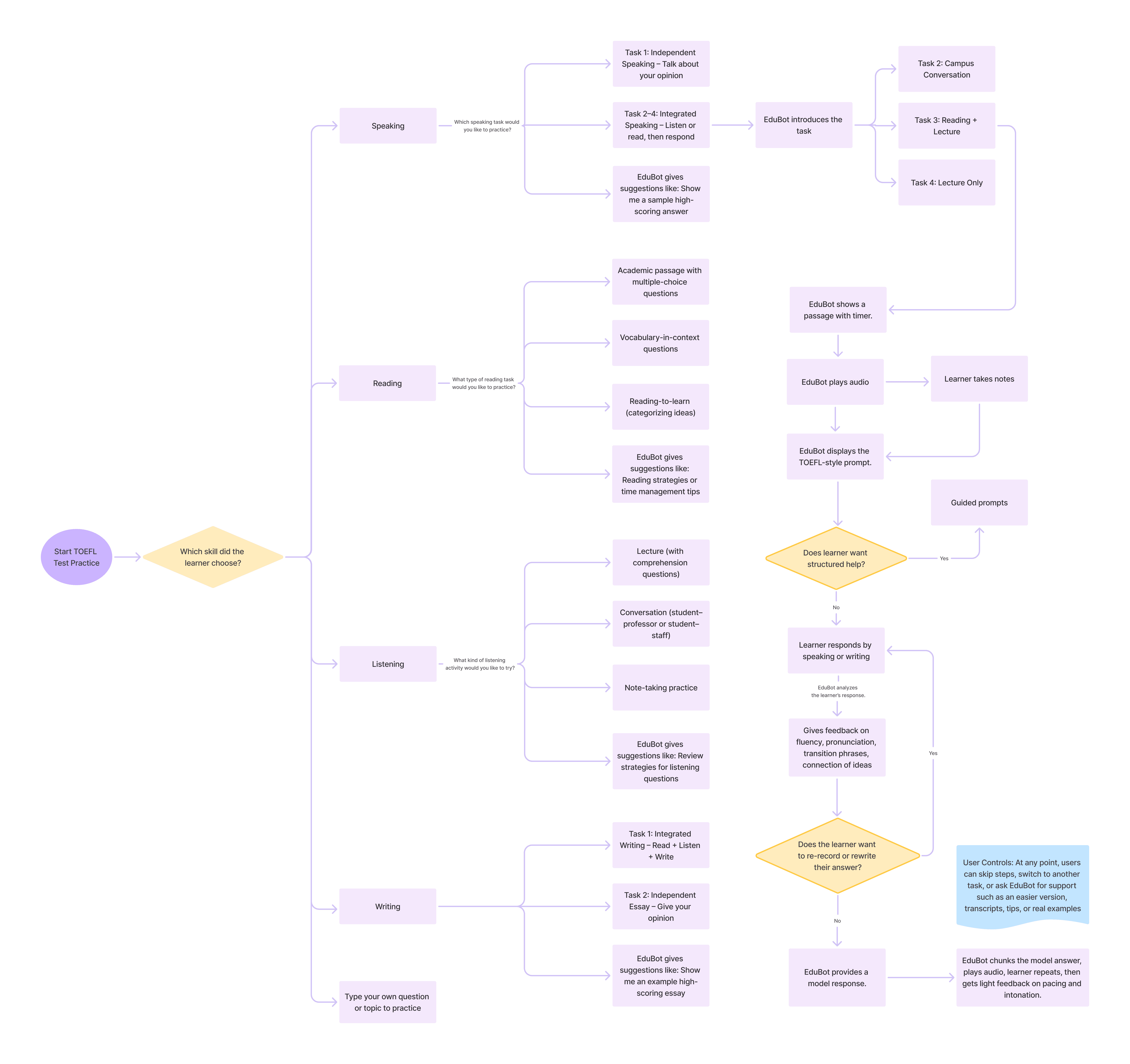 Through this project, I learned that designing an AI tutor isn’t just about building features, it’s about building trust. Many users wanted to learn with AI, but they still needed warmth, empathy, and guidance. In the future, I’d explore how EduBot’s tone and personality could adapt to different learner emotions to make the experience feel more human and supportive.