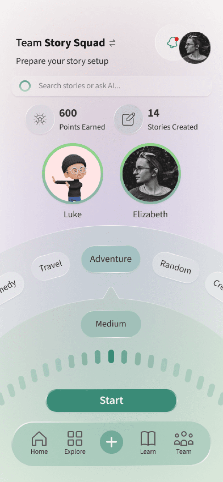 Repositioned the “Create a Story” CTA to stand out as the main action, clarifying focus and flow.