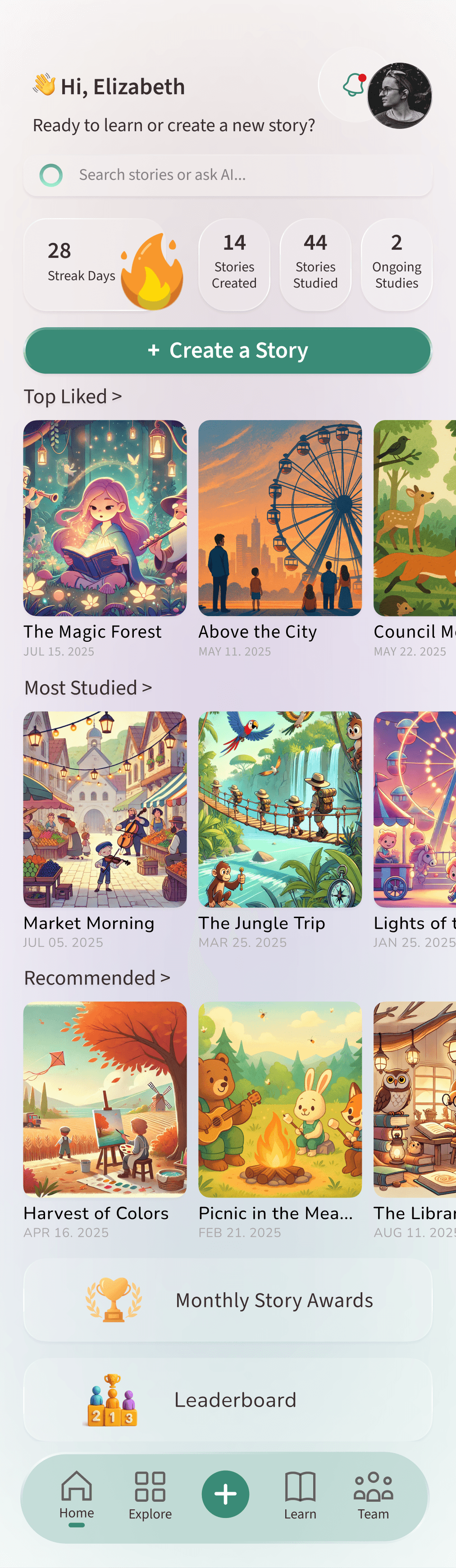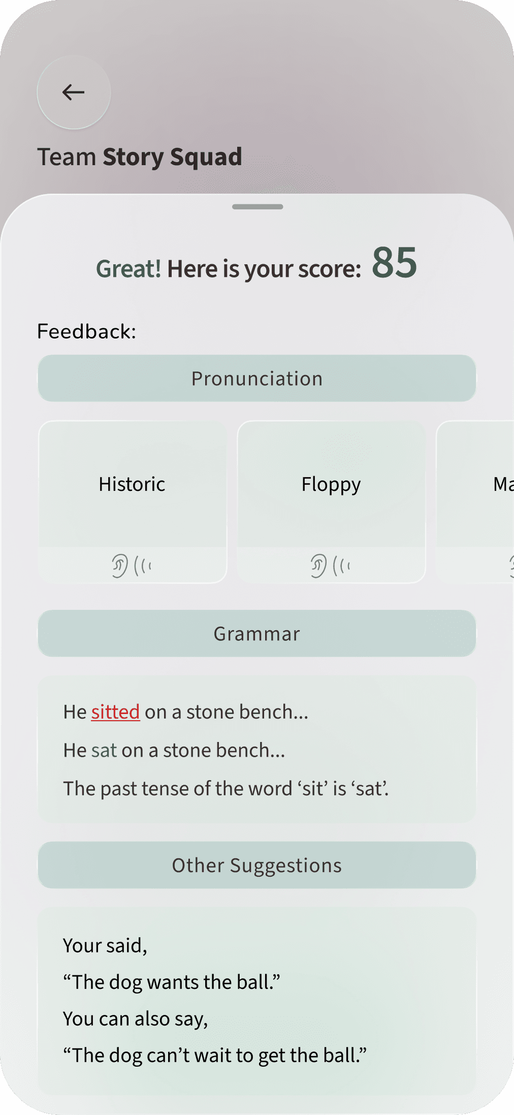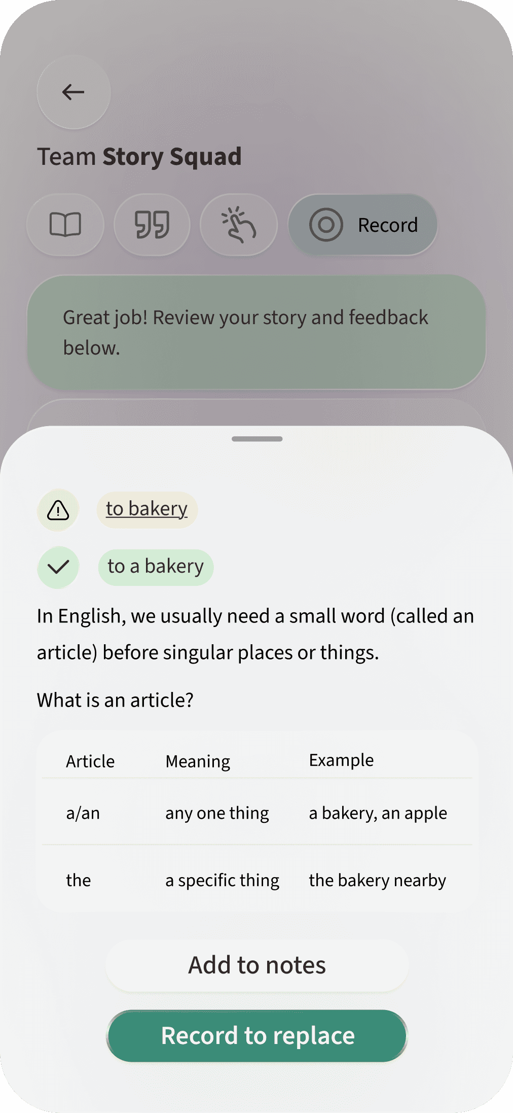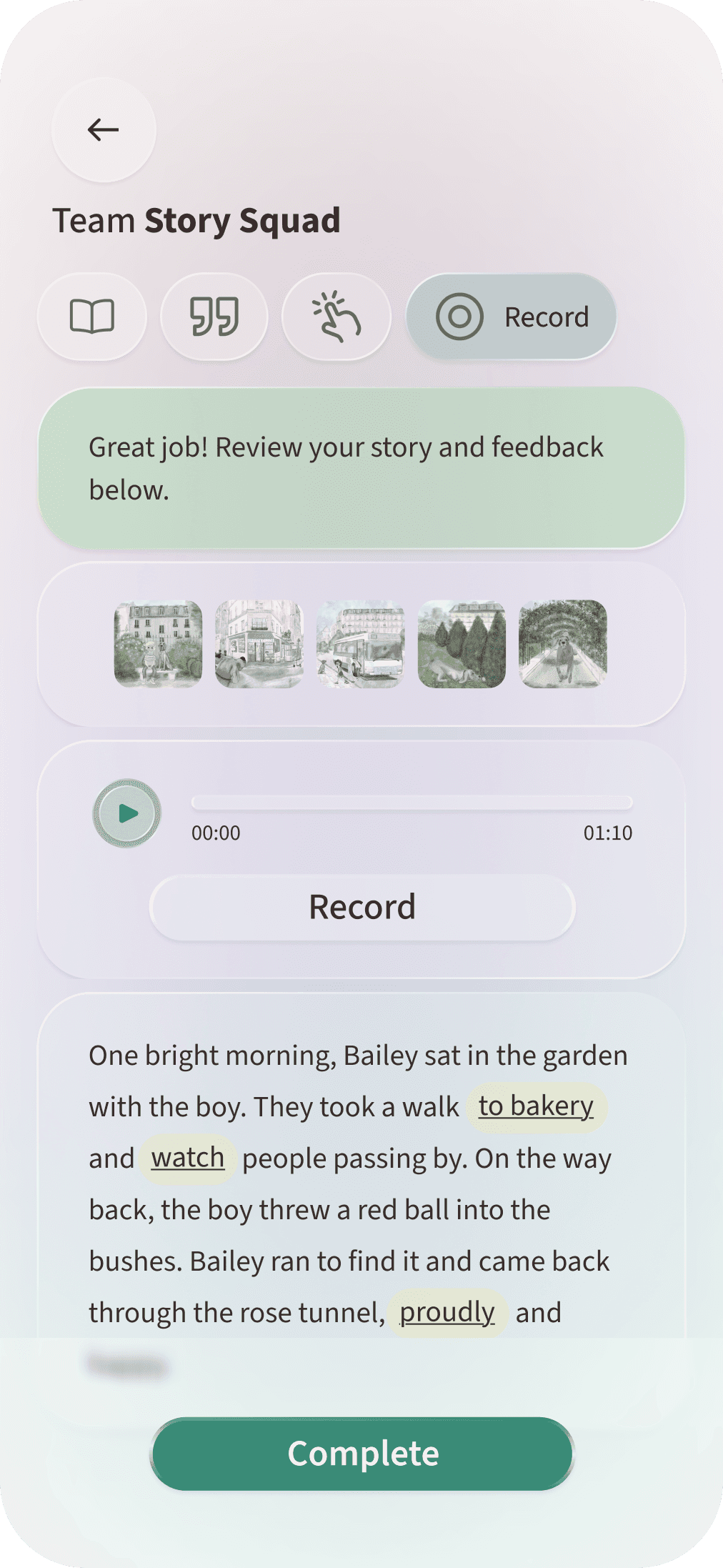 Parents record the stories they create and receive instant language feedback to support learning and improvement.