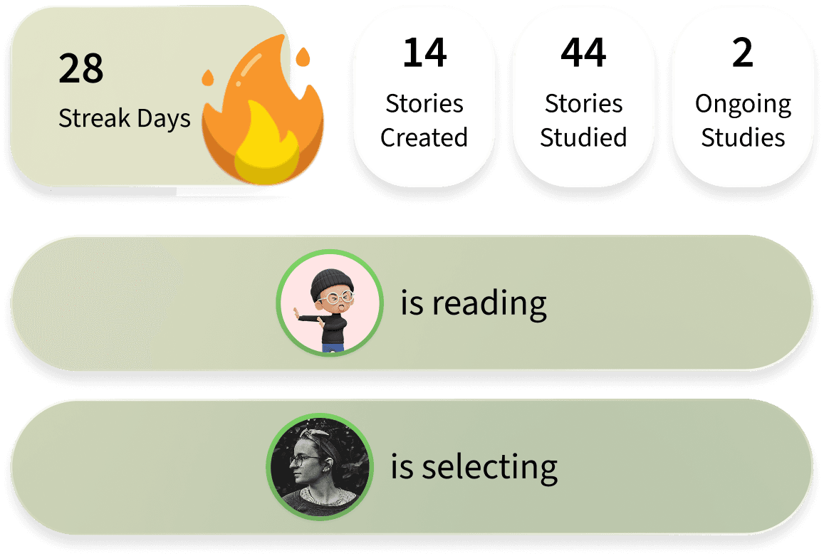 Created a two-column structure that balances personal progress (left) with story discovery (right), making both equally accessible.