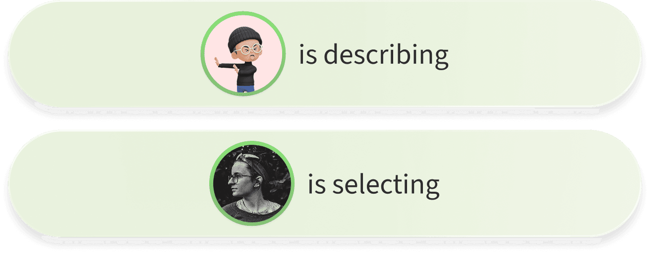 Added a live status indicator to show when the other user is reading or selecting, improving coordination without revealing screens.